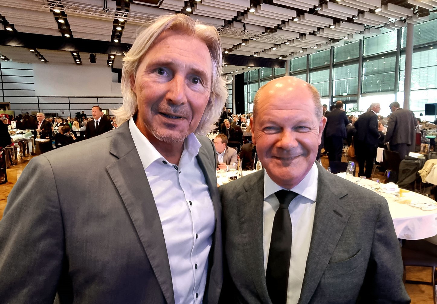 Andreas Tracz, Geschäftsführer der K&K Networks GmbH aus Unna nutzte die Gelegenheit, dem Bundeskanzler in der Diskussion drei konkrete Fragen zur Digitalisierung in der Verwaltung, zur Reduzierung des Bundeshaushaltes 2024 im Bereich Digitalisierung und KI und zu den in der Öffentlichkeit ausgetragenen Unstimmigkeiten in der Ampelkoalition zu stellen. Der Bundeskanzler nahm sich ausgiebig Zeit, um auf die Fragen einzugehen.